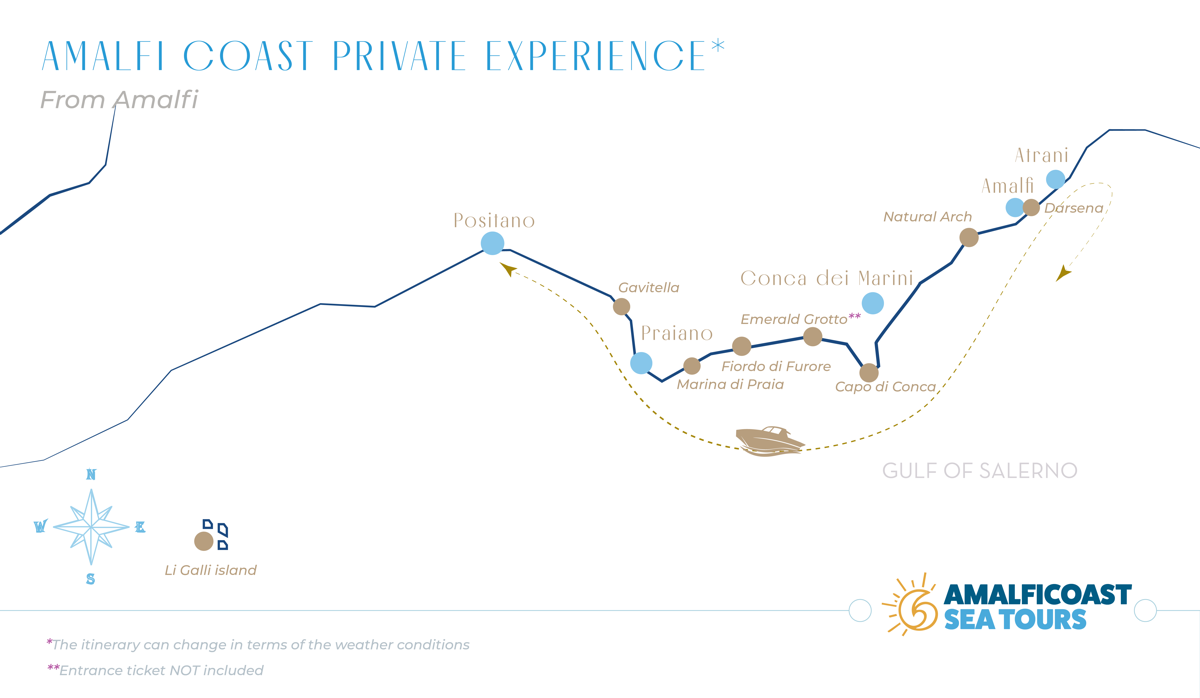 *We also offer departures from Praiano at Marina di Praia or at La Gavitella.